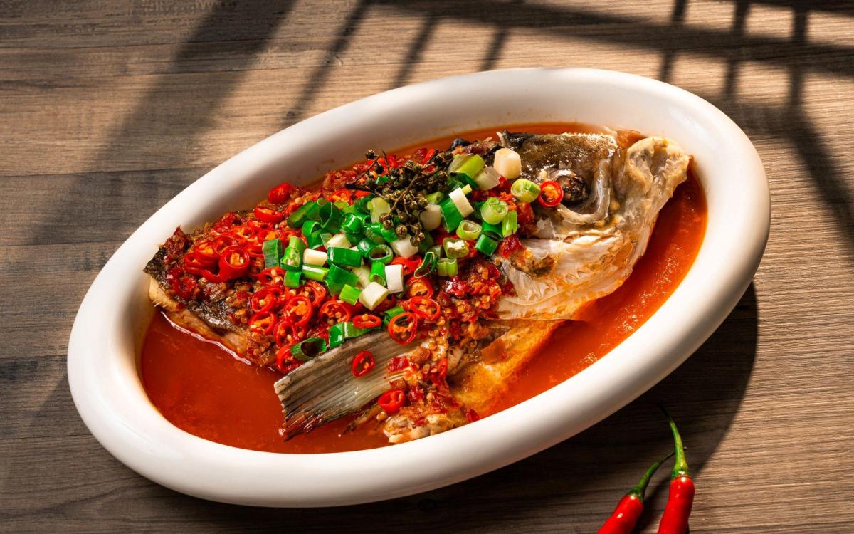 嚴選魚頭搭配特製醬料蒸製入味,肉質細嫩鮮甜。以青藤椒帶出清新麻香,融合紅椒與蒜香提味,整體風味層次分明,展現麻而不燥、香氣清爽的川味特色。